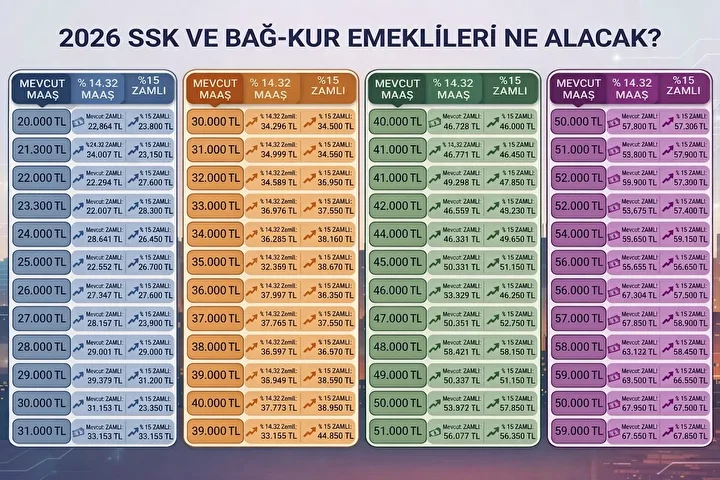 Bu oran, SSK ve Bağ-Kur emeklileri için doğrudan maaş artışı anlamına geliyor. Yani mevcut tabloya göre emeklilerin alacağı zam büyük ölçüde şimdiden şekillenmiş durumda.